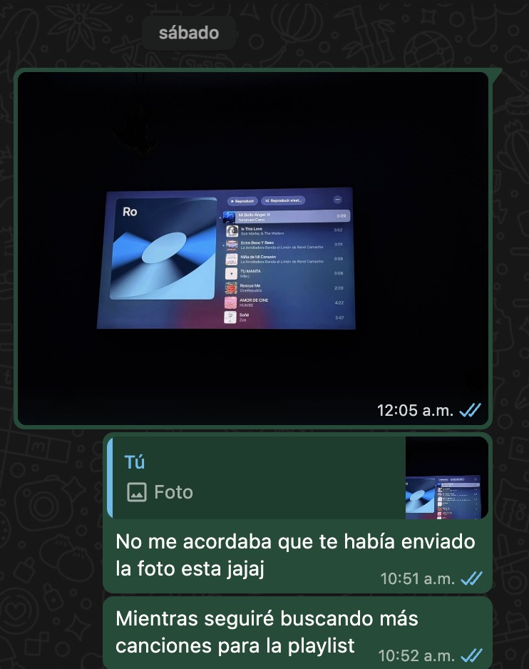 Mientras te decía que estaba armando una playlist para ti, esta misma playlist hacía el acróstico «mientras» formado por canciones que me recuerdan a ti y que de alguna forma especial, dicen lo que siento por ti.