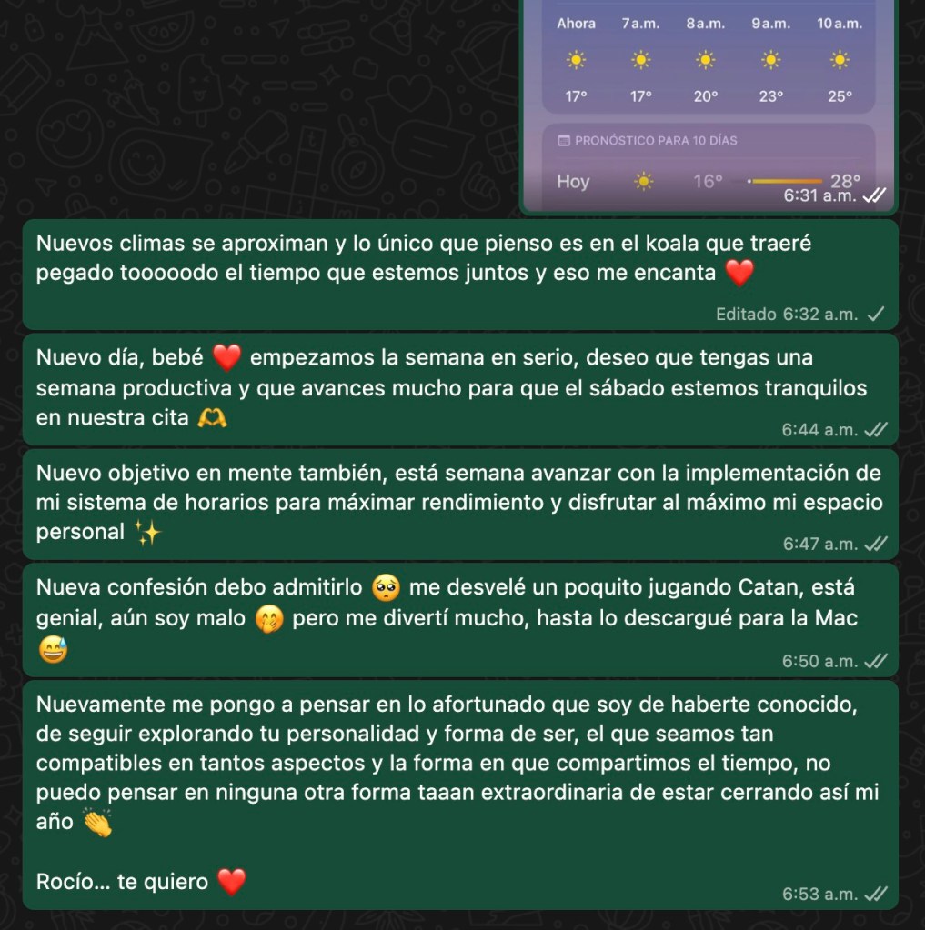 Empezamos a hablar por Whatsapp el 13 de septiembre y no ha pasado un solo día sin que hablemos.